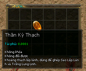 - Cần 10 Thần Kỳ Thạch + 1 Lăng Vân Thạch + 5 Kim Nguyên Bảo ( Đại ) để ghép được 10 Trăng Lung Linh ( Khóa )