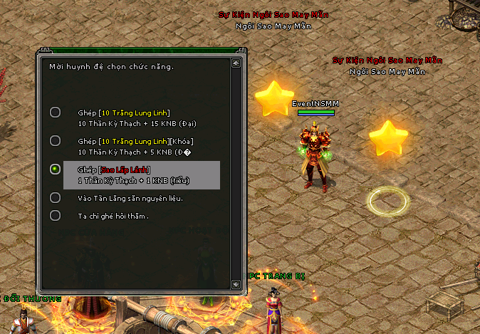 - Cần 1 Thần Kỳ Thạch + 1 Kim Nguyên Bảo ( Tiểu ) để ghép được 1 Sao Lấp Lánh