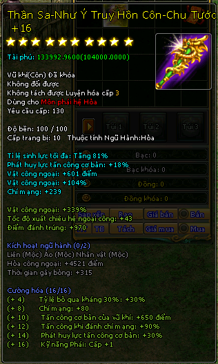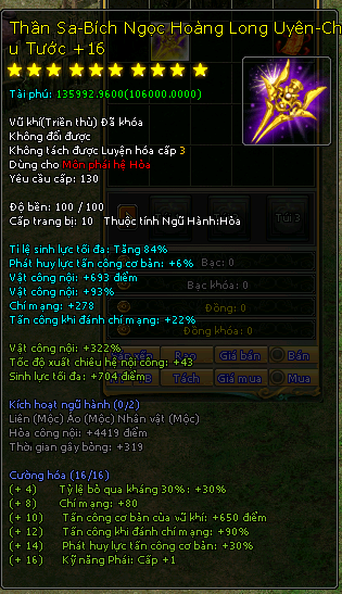 + Nâng cấp thêm 2 dòng : dòng 5 và dòng 6 của vũ khí thần sa