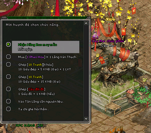- Các huynh đệ tham gia hoạt động tới Cây Mai Chúc Phúc đối thoại và chọn : Nhận Hồng Bao may mắn