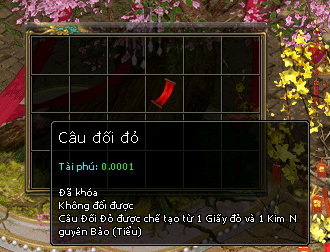 Lưu ý : Cần 1 Giấy đỏ + 1 Kim Nguyên Bảo ( Tiểu ) và cần 5 ô trống để ghép vật phẩm