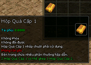 - Lưu ý : 2 Hộp quà cấp 1 sẽ nâng cấp được thành 1 Hộp quà cấp 2 và Túi của bạn cần ít nhất 5 ô trống để ghép